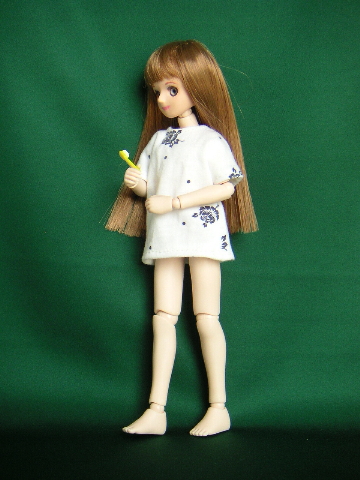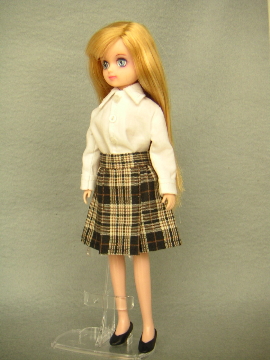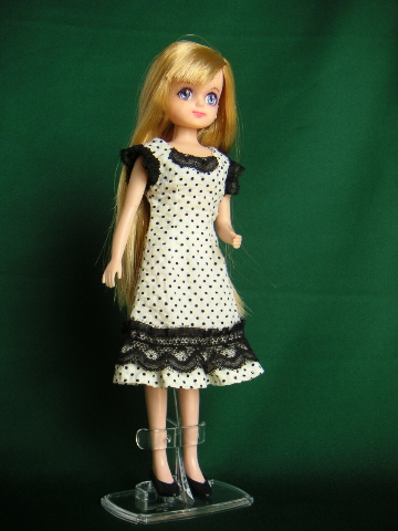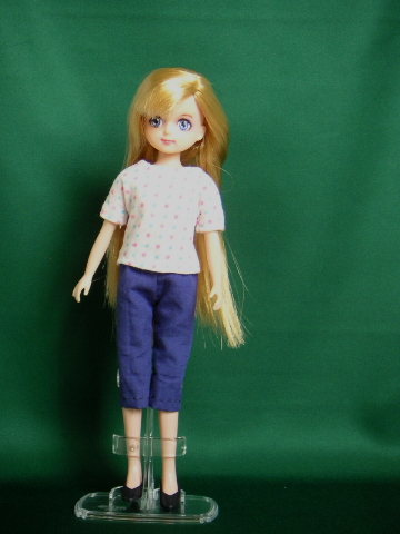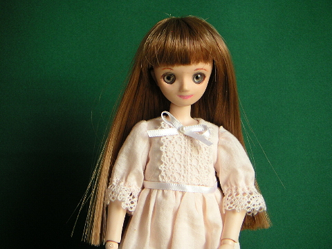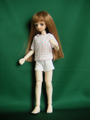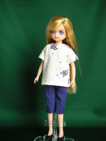 そでつけなしの簡単なものなのに、リカちゃんが着ると、きれいなシルエットが出ます。えりぐりはもう少し深いほうが良い気がします。