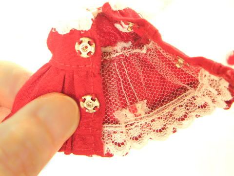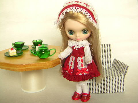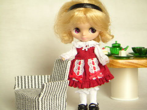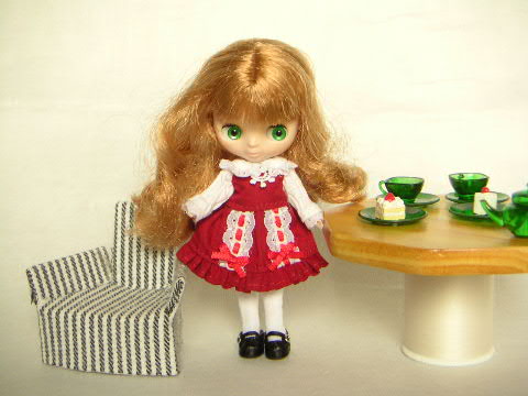 赤が強烈なので、髪の毛の色の薄いパン子さんとベリ子さんが似合います。パピ子さんにも着せたんですが、あのひとフリル似合わない……。