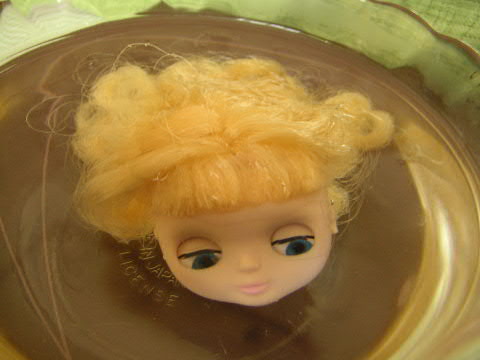 頭をはずして、分解して、目玉パーツをお湯につけて睫毛をはずす。