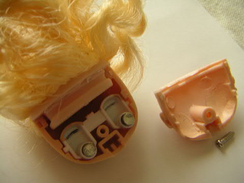 頭の後ろにあるねじを外して、頭と胴体を分離した図
